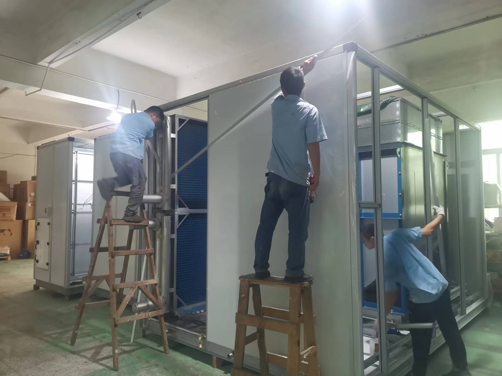 上图为3台十万风量组合式制冷空调机组